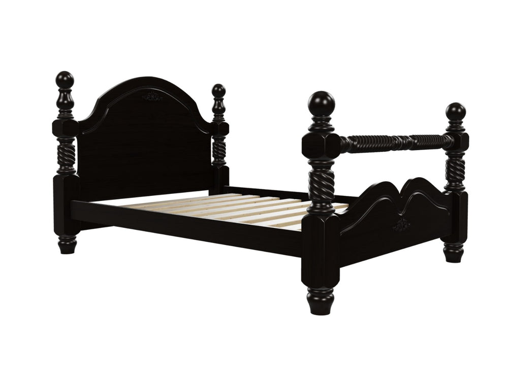 On the other hand, a black wooden bed frame brings a sense of warmth and timeless elegance to the room. Its solid presence suits everything from traditional interiors to contemporary or even rustic designs. Whether it has a shaker-style headboard or a sleigh-bed silhouette, black wood adds weight and substance to your overall scheme.