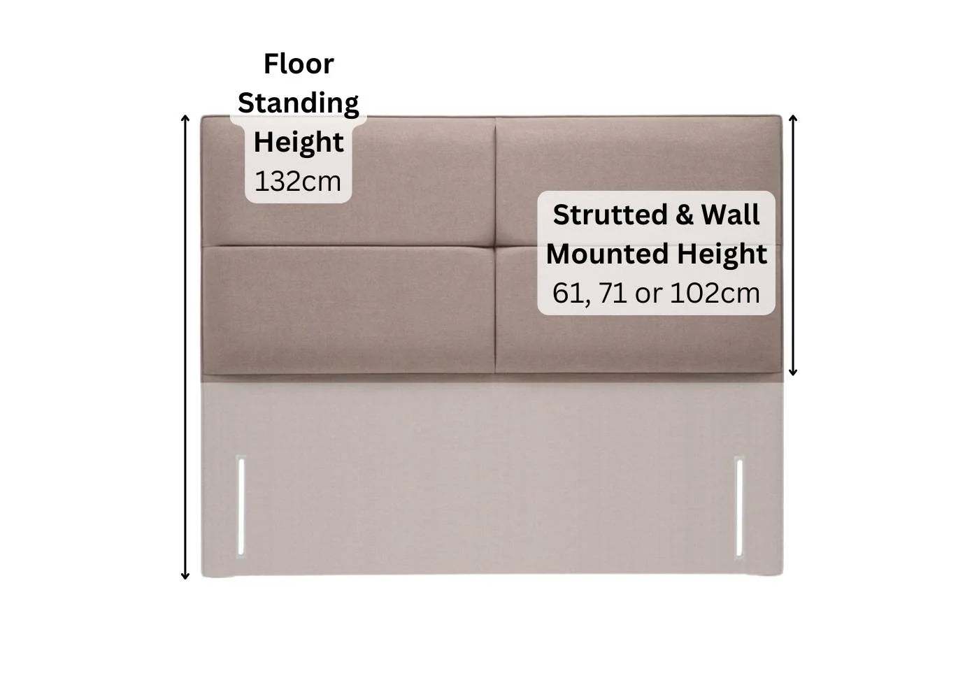 The plush cushioned finish of the Bellflower Headboard will have you dreaming of lazy mornings spent enjoying a steaming mug of freshly brewed coffee or tea in bed. The Bellflower is available in all sizes in a choice of strutted or floor standing height options.