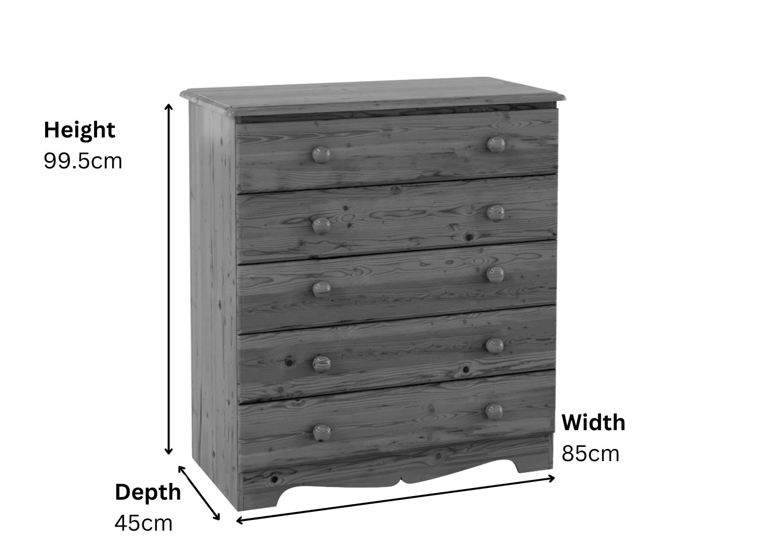 Up your storage game with our strong wooden bedroom furniture. Built from high-quality and sustainable pine, our Wellington 5 Drawer Custom Chest provides an incredible amount of storage to keep your bedroom floor and surfaces thoroughly clean and clear. Ideal for kids and adults, this bespoke chest of drawers is as hard-wearing as it is handy.