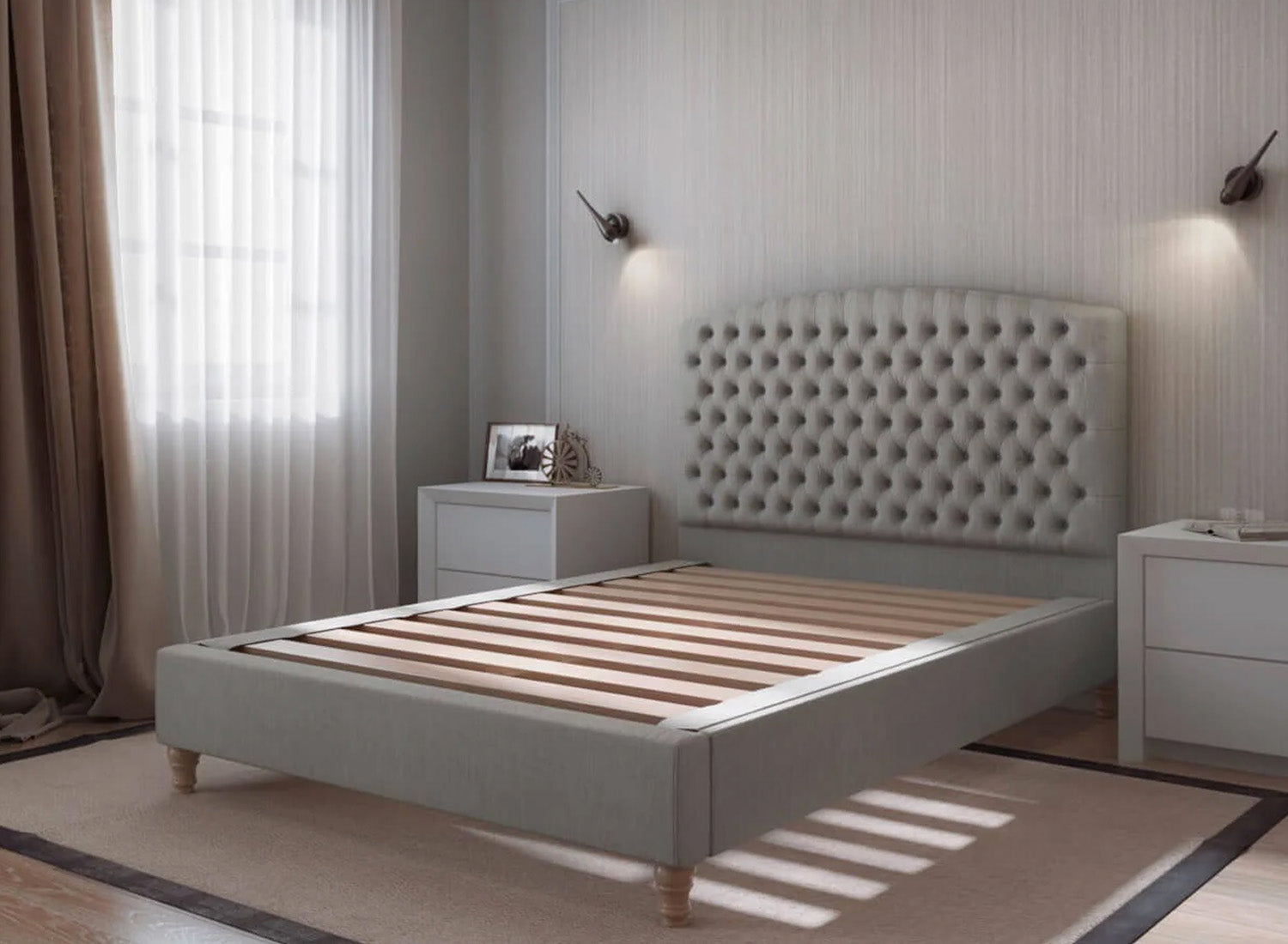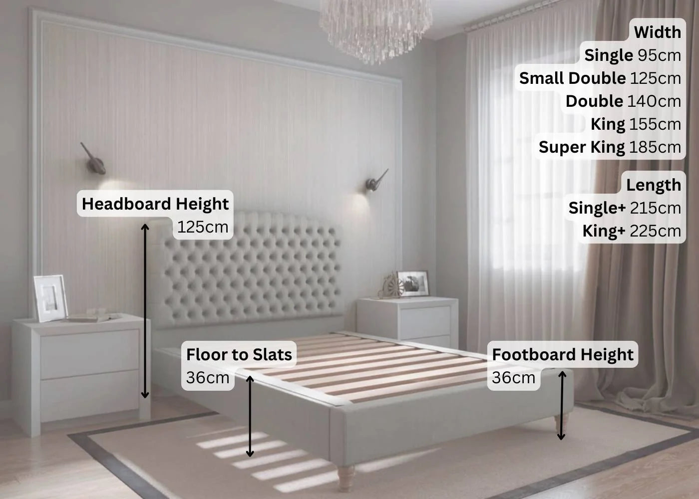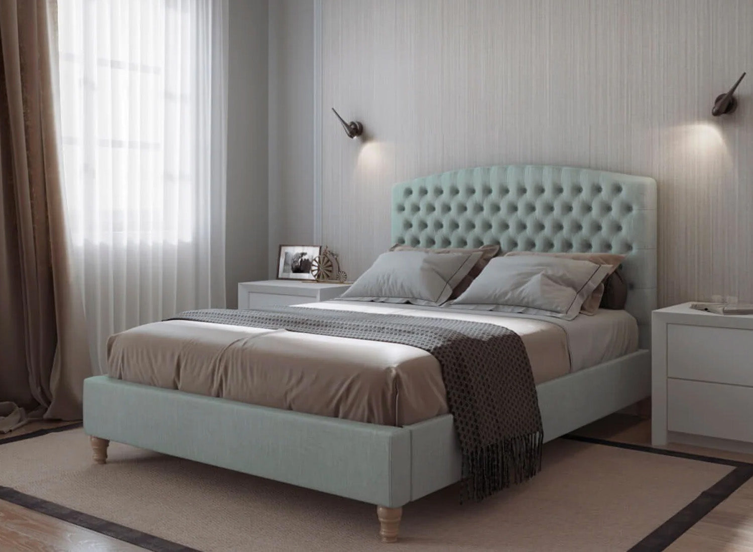 The Chesterfield’s deep-buttoned, curved headboard creates a luxurious and timeless look. Its plush padding adds both comfort and elegance, making it a standout feature in any bedroom.