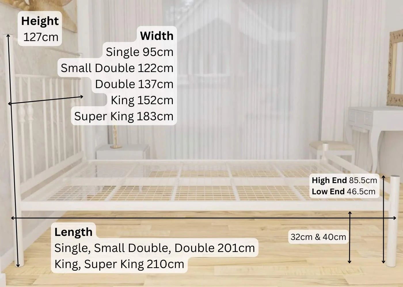 - Underbed Clearance: 32cm or 40cm (Fittings for Both)
