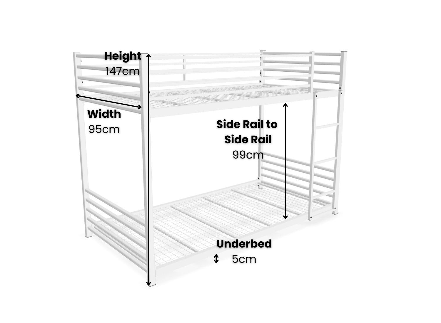 - Side Rail to Side Rail: 99 cm