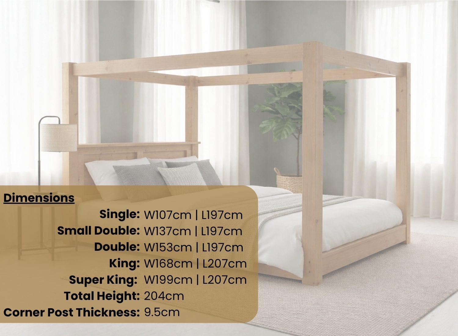 • Low Profile Canopy Design - A grounded version of a classic four poster, offering a softer, more relaxed presence in the bedroom.