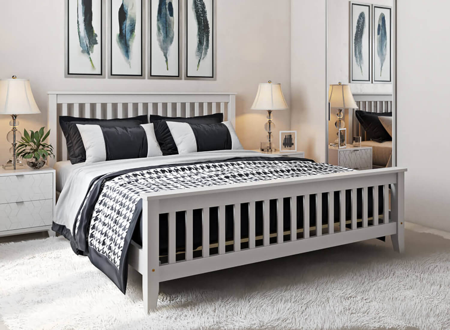 The Coxford comes in multiple frame finishes suiting every choice of décor, from traditional stains to bright painted blacks, whites and greys depending on your personal style. Constructed from robust Scandinavian pine, these custom-made beds come in a range of different sizes, from small singles through to Emperor. The solid wooden slats offer a comfortable night's sleep, while high-quality fixtures and fittings keep your bespoke bed looking brand-new for generations to come. It is also available in a high end, as shown in the image. With sustainably sourced materials, the Coxford is the best of both worlds, providing incredible slumber while helping the planet in the process.