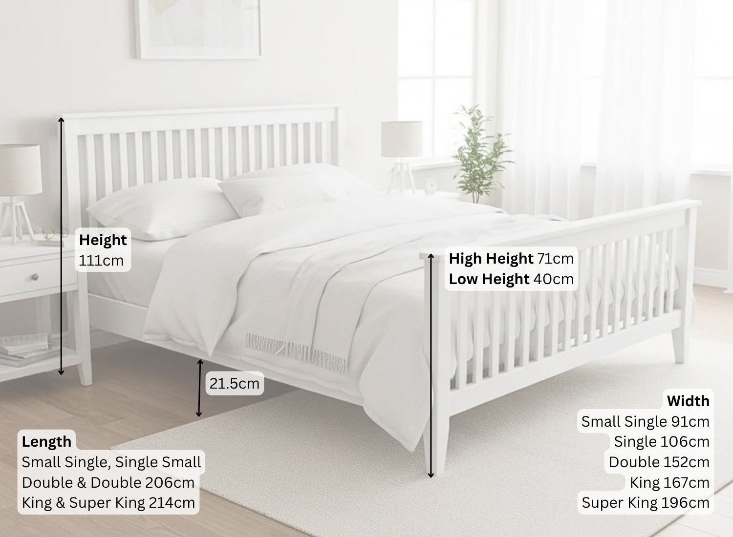 • Height to Top of Slats: (Single) 29.5 cm or (Small Double +) 31 cm