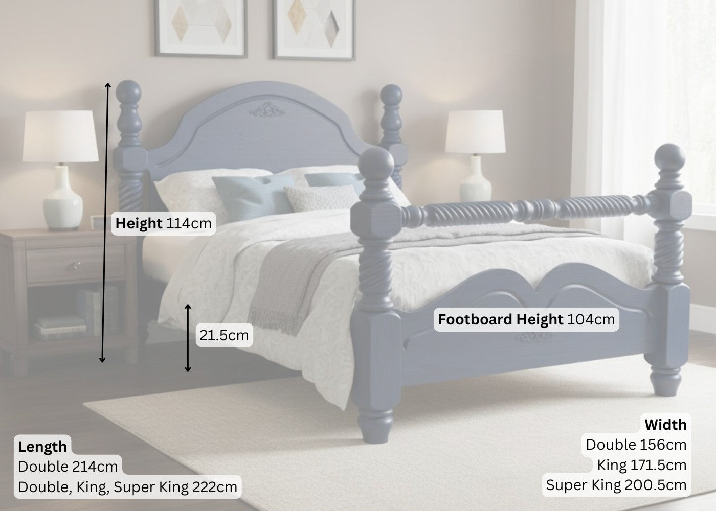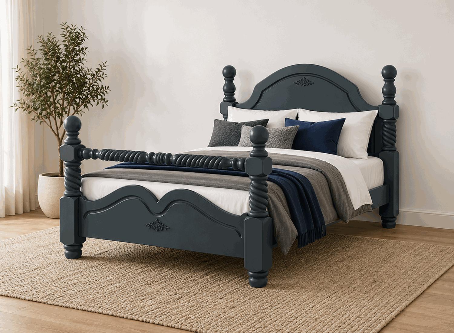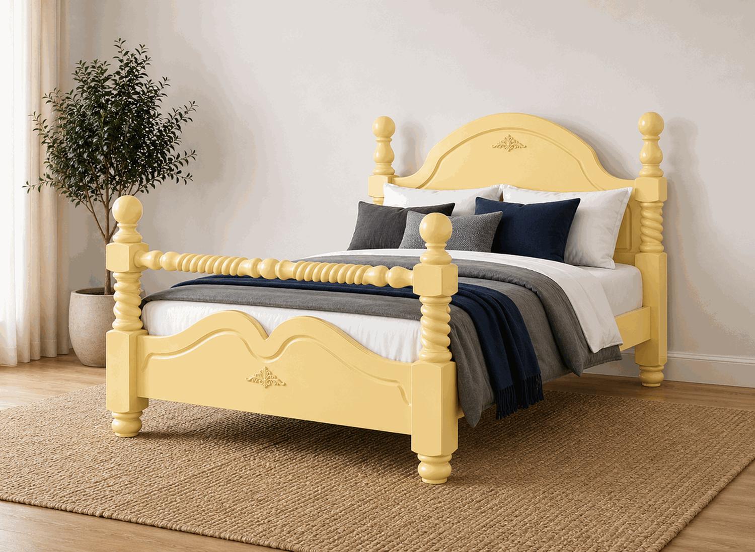 The Illington painted wooden bed frame shifts the focus by offering a softer, more styled presence within the bedroom with the painted options. Its classic turned posts and gently curved headboard are complemented by a smooth painted surface, giving the design a cleaner, more contemporary feel. Available in seven standard colours including blue, cream, green, grey, pink, white and yellow, it allows for flexibility across both subtle and more expressive interior schemes.
