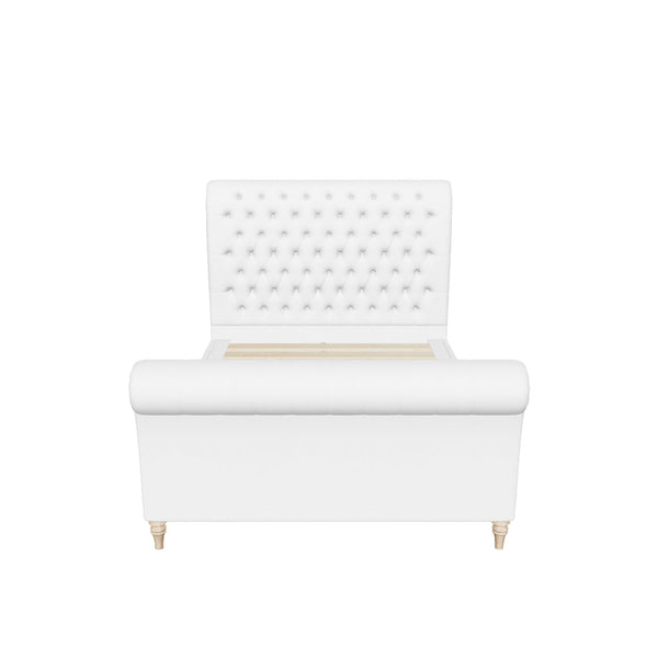 With stylish studded edges, the bed also features sturdy wooden feet as well as solid FCS certified wooden slats. The frame sizes range from Small Single to Super King, so something to suit everyone. It's also available to buy in 2 different foot end styles, low and high, whilst the standard feet style shows a beautifully carved piece. This strong upholstered fabric bed is designed to support weights of up to 45 stone, around 285 kg, supporting all UK standard size mattresses.