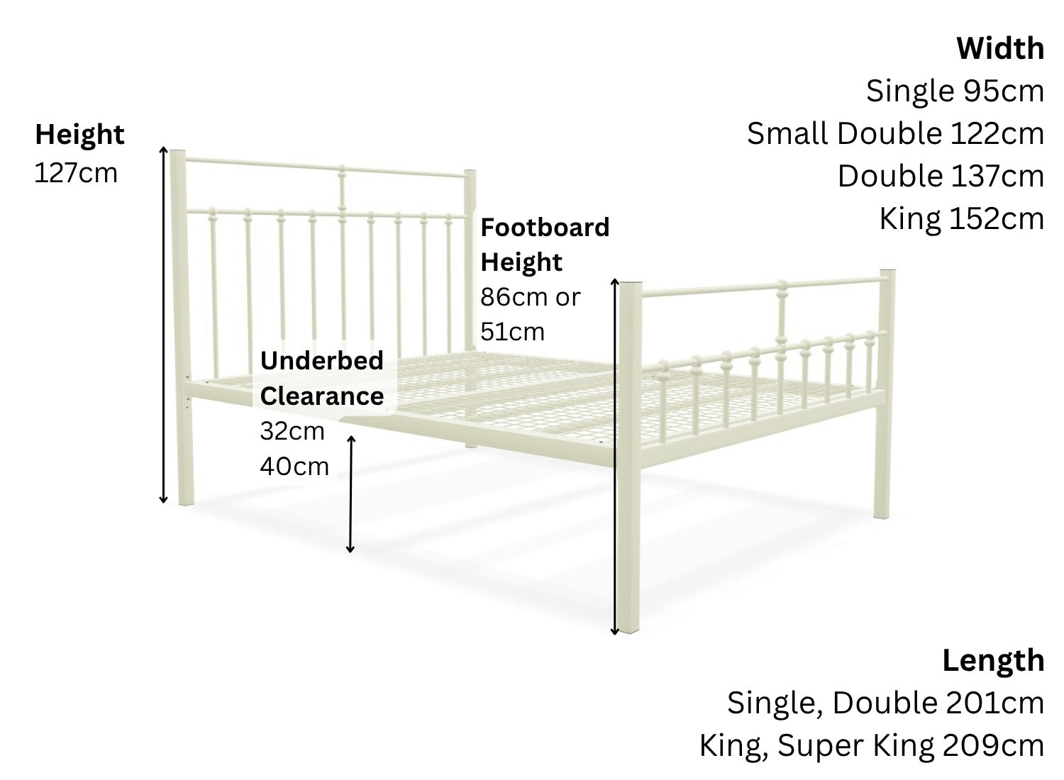 - Underbed Clearance: 32cm or 40cm (Fittings for Both)