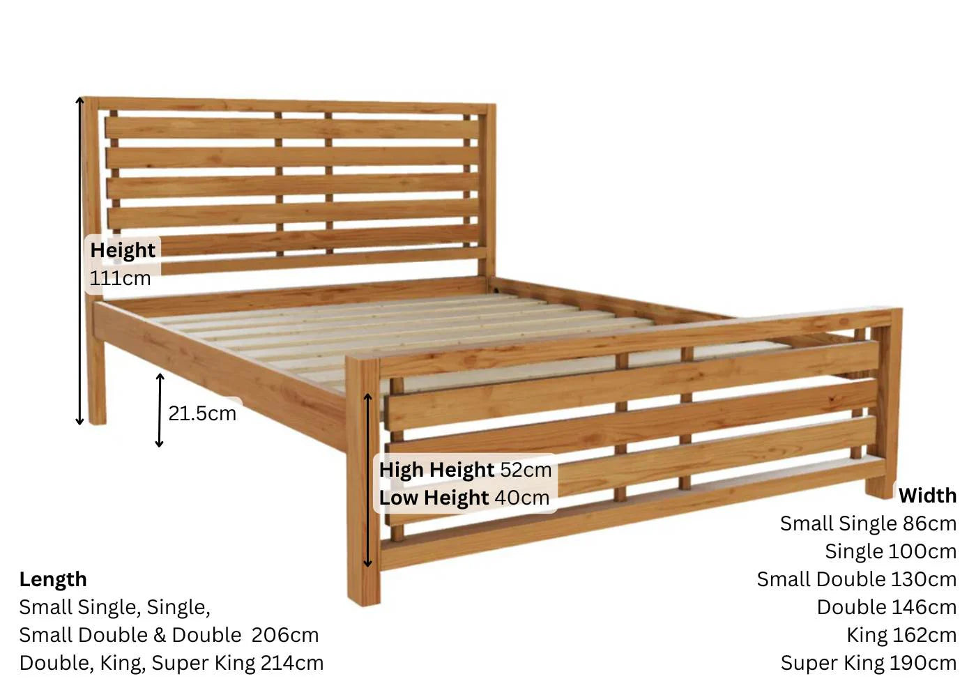 This bed is available in Small Single, Single, Small Double, Double, King, and Super King sizes, all designed to fit standard UK mattresses. This range ensures you’ll find the perfect size for any bedroom.